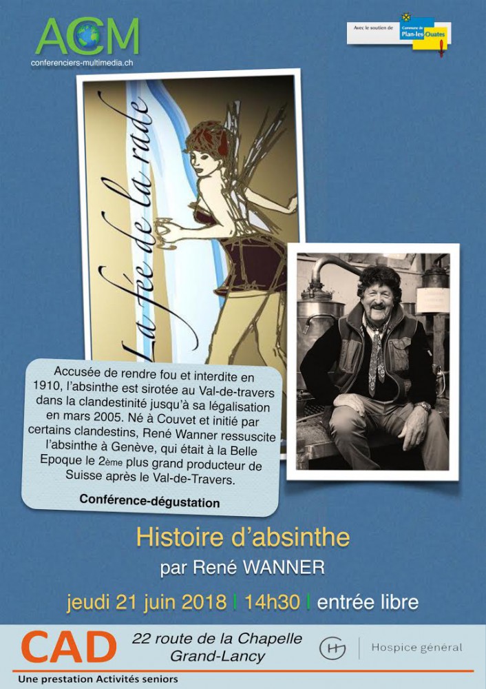 Accusée de rendre fou et interdite en 1910, l’absinthe est sirotée au Val-de-travers dans la clandestinité jusqu’à sa légalisation en mars 2005. Né à Couvet et initié par certains clandestins, René Wanner ressuscite l’absinthe à Genève, qui était à la Belle Epoque le 2ème plus grand producteur de Suisse après le Val-de-Travers.