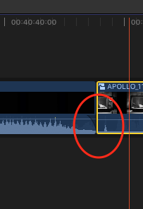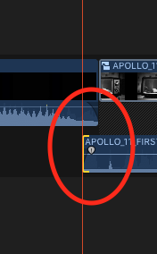 Maintenant, vous voyez que la piste "Storyboard" s'est agrandie (la partie noire peu qu'on a du mal parfois à distinguer) et que le son de la partie "APOLLO_11" s'est détachée. Le tour est presque joué. Il suffit de créer un fondu en entrée (référez-vous à la documentation ou venez nous retrouver pendant les cours de montage) et d'allonger la partie audio du clip.