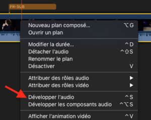 Ensuite cliquez sur le bouton droit de votre souris afin de faire apparaître le bouton contextuel. Sélectionner dans le menu l'option "Développer l'audio".